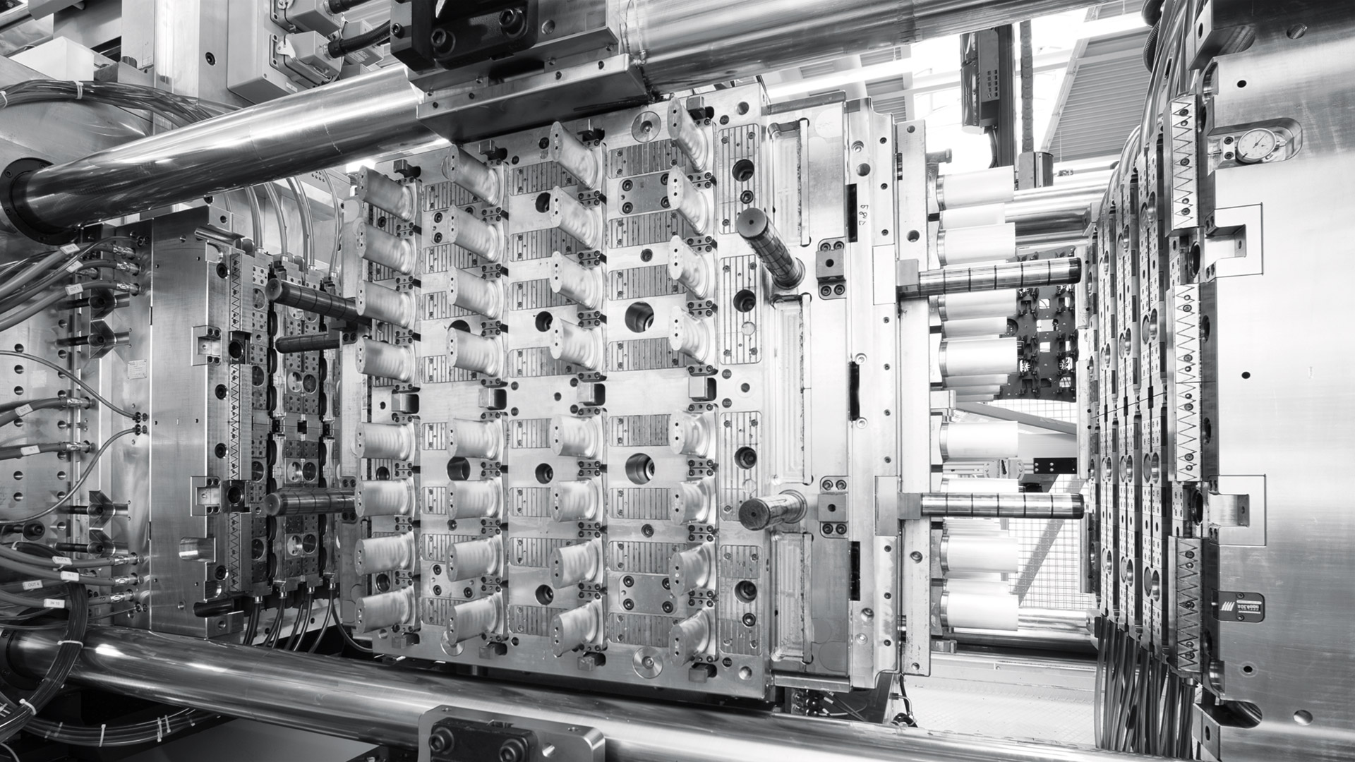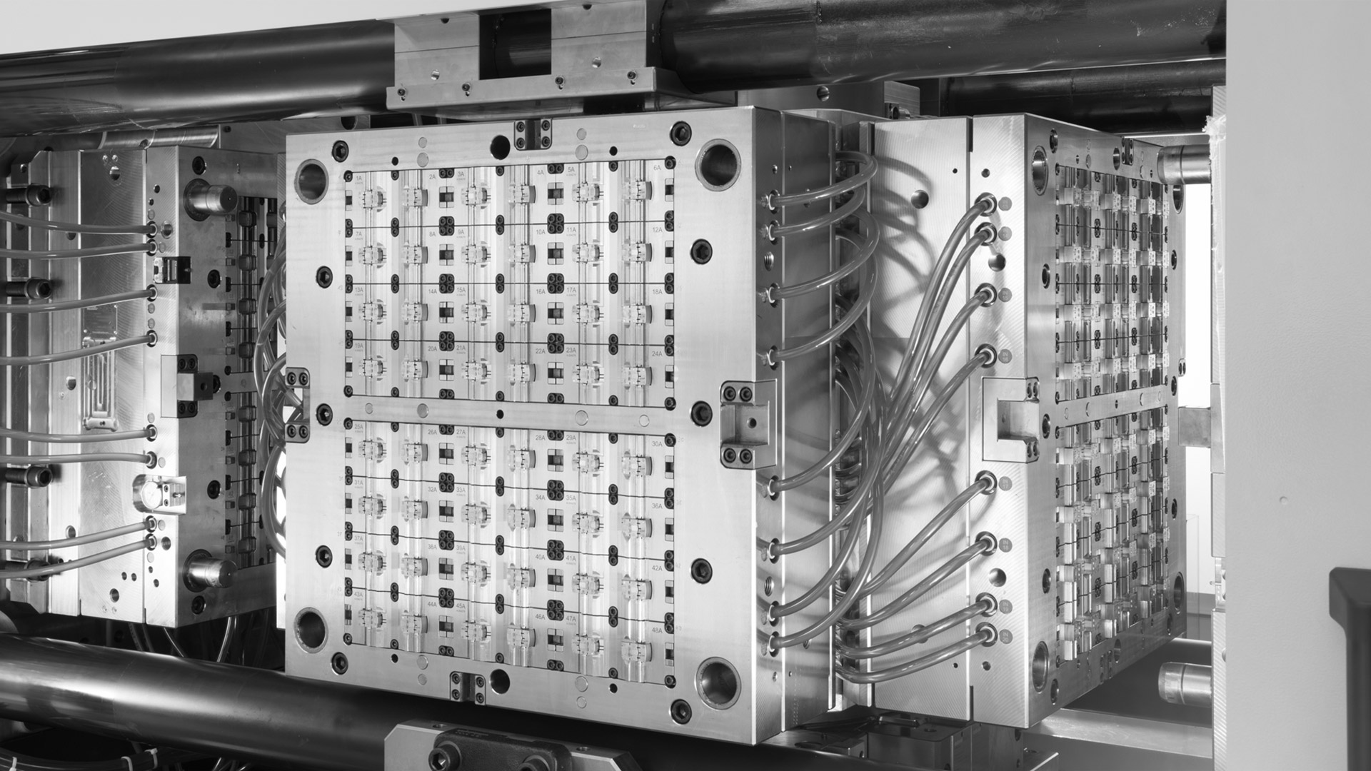 In-mold-assembly (IMA) is a special variant of the cube technology. In this technique, the four stations of the cube are used in a special sequence. Two different parts are injected at the same time at station 1. At station 2, high-precision assembly can be carried out both within and outside the system. The parts are overmolded at station 3, then removed or ejected at station 4.