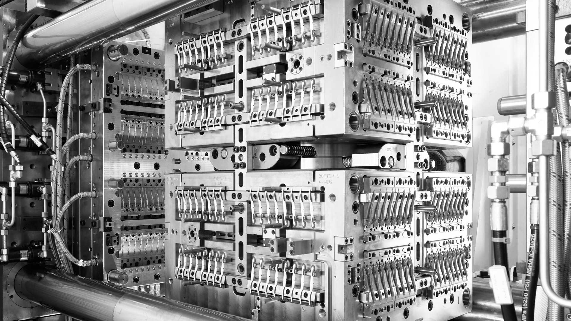 In-mold-assembly (IMA) is a special variant of the cube technology. In this technique, the four stations of the cube are used in a special sequence. Two different parts are injected at the same time at station 1. At station 2, high-precision assembly can be carried out both within and outside the system. The parts are overmolded at station 3, then removed or ejected at station 4.