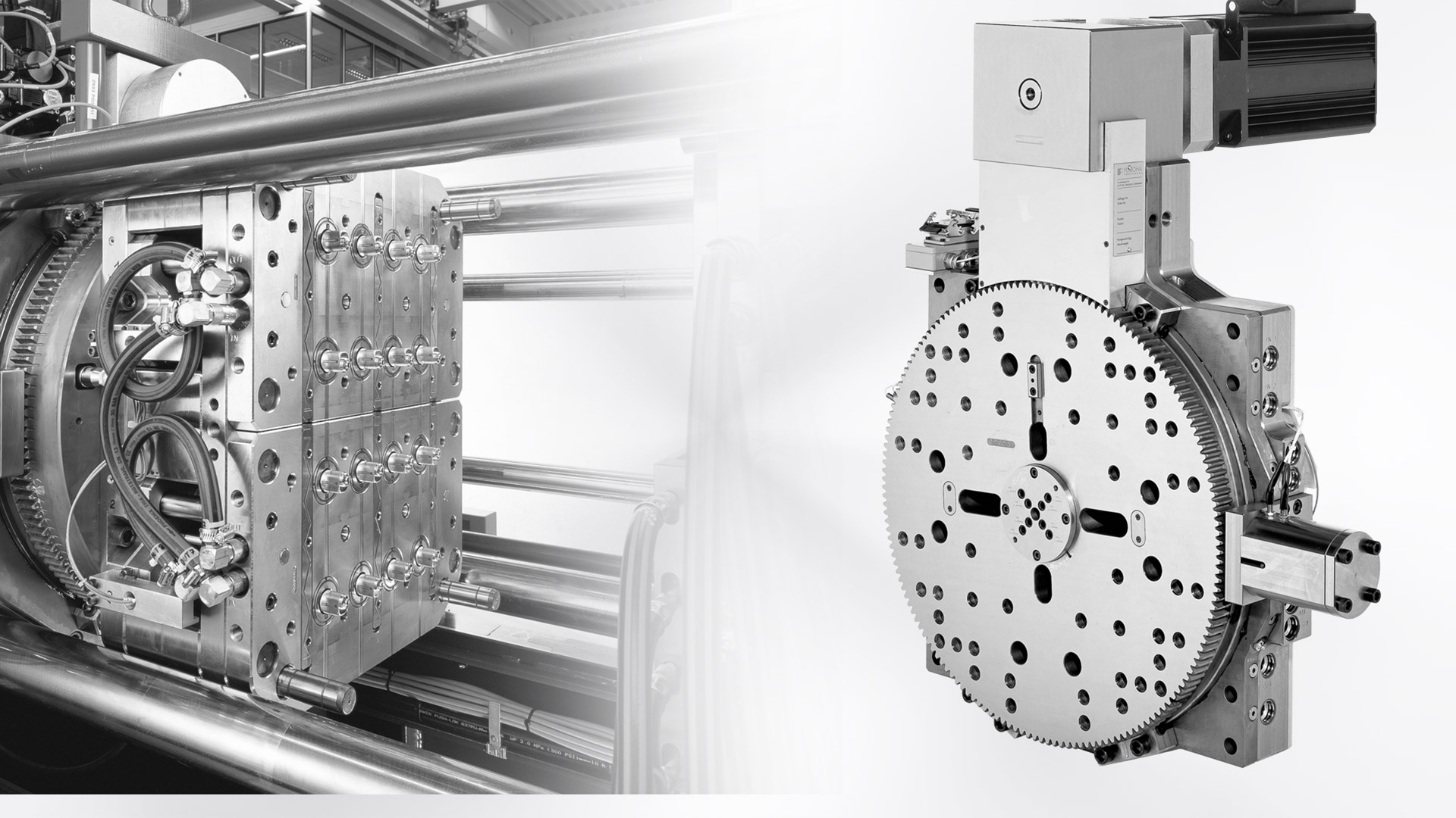 Linear transfer technology makes efficient use of the available mold installation space in the injection molding equipment. Especially when multiple injection stations are required, traditional turning systems soon reach their limits because of the space required by rotary transport of the substrate.